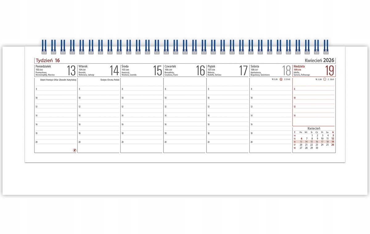 • Układ: tydzień na stronie