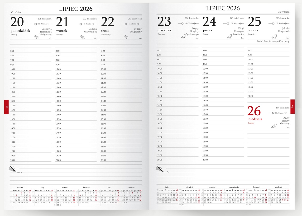 • na ostatnich stronach kalendarza notes oraz miejsce na adresy, telefony, daty świąt, terminy ferii zimowych, informacje dla podróżnych, protokół wypadkowy i inne..