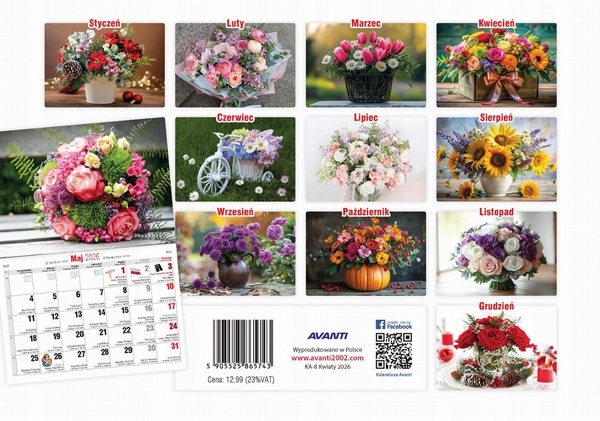 • Rozkładany kalendarz ścienny, drukowany na papierze kredowym