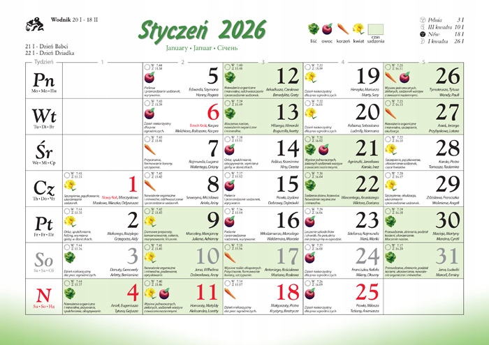 kalendarz ścienny 2026 z kalendarium biodynamicznym Ogródki przydomowe