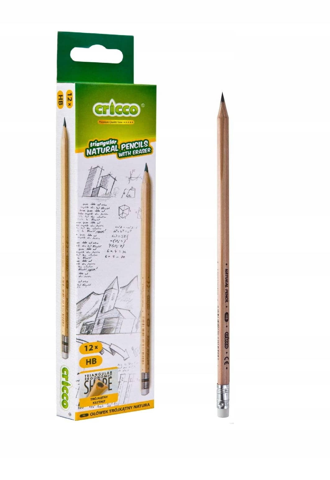 Ołówek naturalny trójkątny z gumką HB Cricco
