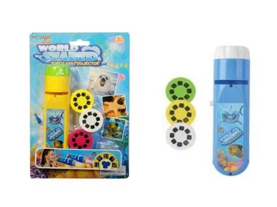 Latarka i projektor w jednym. Lekka poręczna latereczka przyda się każdemu małemu poszukiwaczowi przygód. Gdy będzie chciał pooglądać zwierzęta wystarczy w latarkę włożyć kółeczko ze slajdami zwierząt. Są to 24 zdjęcia zwierząt morskich. W zestawie: 3 x 8 zdjęć, latarka. Zabawka działa na baretie typu AA. Baterie nie są załączone do zabawki. Podane wymiary są wymiarami opakowania.